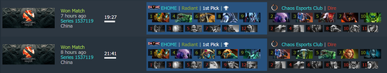 输给VP并不是一个意外的结果,相反,EHOME能从Major冠军的手上拿到一分,已经让人见识到了他们这段时间的成长。不过,到了EHOME打Chaos的时候,情况就有点不妙了。那局比赛,Chaos在最后一手点出了W33的绝活风行者——但这个风行并不是我们讨论的重点,对于Chaos而言,潮汐小娜迦的大招联动才是他们取得胜利的原因。说起来,这局其实和VP打EHOME的第三局有很多相似之处。又选了敌法师,中期,EHOME又发现自己挡不住对面的推进。于是,敌法师又开始带球。少了一个大哥,正面团果然又没打过。虽然Chaos在团战处理上远没有VP那么细腻,但那个全场经济第一的小娜迦,还是摧毁了EHOME的防线。