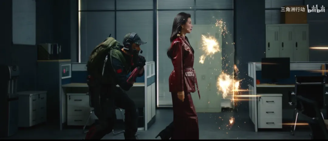 而这次官方整活的片子里,就引用了多个玩家社区的梗。比如让刘涛站在红狼身前挡子弹;