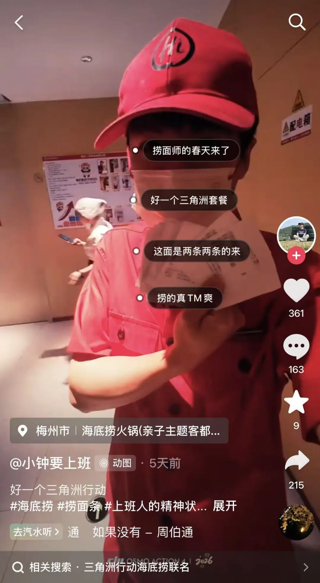 当官方活动足够用心,玩家自然会被调动起情绪,主动参与进来。临近春节,葡萄君提前回到了老家,本来想着在一个三线城市里,线下可能见不到太多同好玩家,结果进海底捞一观察,发现不少人都跟着店里的音乐,哼起了三角洲的小曲儿。 更有捞面师傅表示,感谢三角洲,让捞面生意翻了几倍,这个春节大家都能大捞特捞了。