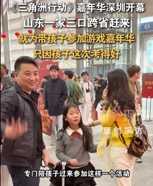 有家长在接受采访时表示,自己的孩子学习成绩不错,平时最喜欢的就是玩《三角洲行动》,寒假期间见到有活动,干脆全家一起从山东过来玩。
