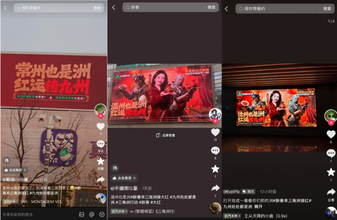 同时,他们也延续了“xx也是洲”的玩家梗,除了此前曾举办过周年庆典的杭州,这次他们还到全国九个名字带“州”的城市“传递红运”,投放线下广告,并引来社媒平台玩家纷纷前往打卡