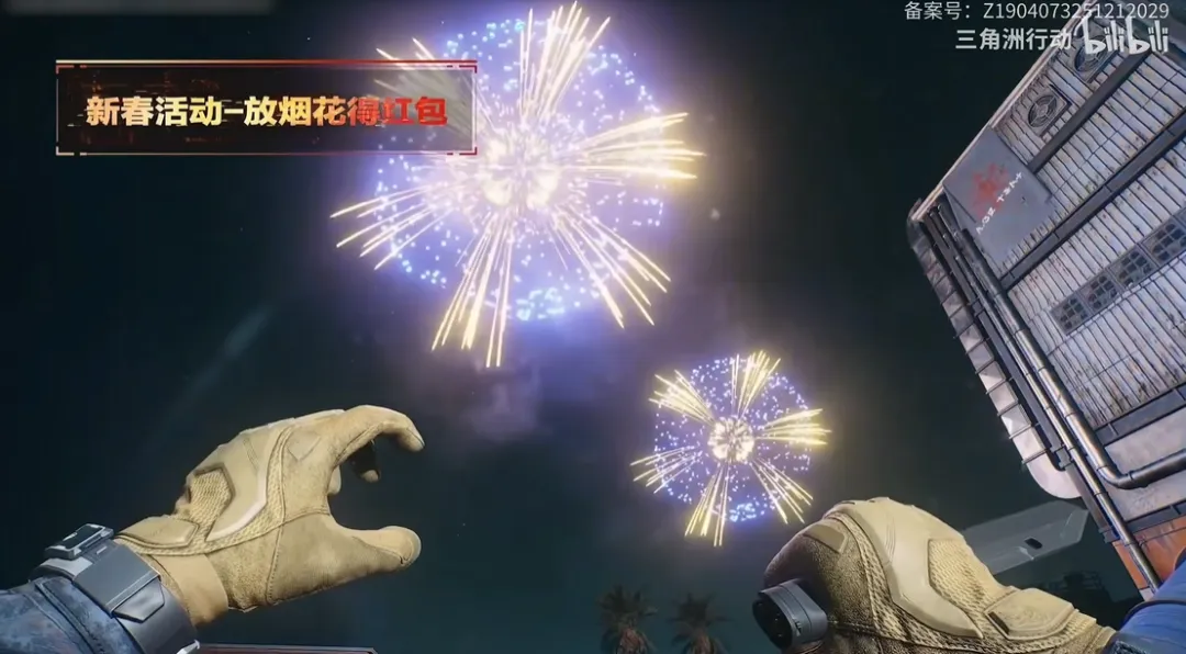 随后是放烟花玩法。去年春节,游戏就会在单局中投放烟花道具,而得益于黑夜行动的上线,今年玩家就可以去到黑夜地图中,用烟花点亮天空。