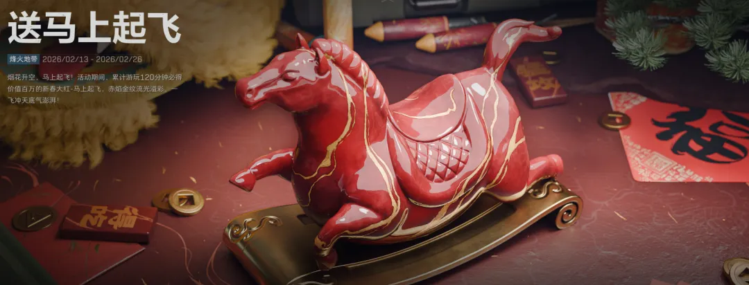 伴随着烟花的绽放,天上还会掉落红包雨和春节限定大红“马上转运”和“马上起飞”(只要春节活动期间游戏时长达到2小时,所有玩家都能免费获得该大红),这也进一步带动了玩家的活跃。